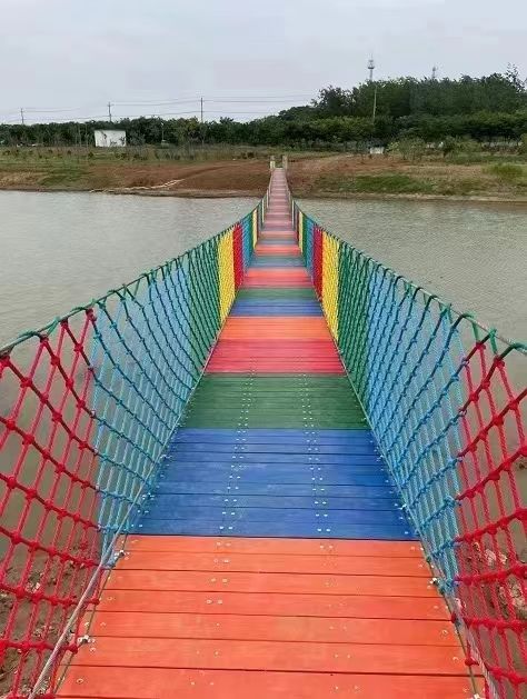 悬索桥作为一种广泛应用于景区大型游乐场的游乐设备,深受游客群体的喜爱,游人行其上,脚踏木板,手握铁索,摇摇晃晃,飘飘悠悠,如荡秋千惊心动魄,是体验式旅游的代表性作品。
